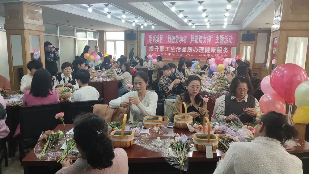 活動中,邀請了包頭市陳欣心理學校的老師針對現代女性在工作、生活中如何進行自我調節和自我放松,從而促進了女職工的身心健康。隨后,花藝老師從選花、裁剪、顏色搭配、造型等多方面講解插花技巧。大家將修剪好的花束插入花籃中,一籃籃春意盎然、獨具匠心的插花作品應運而生。通過學習插花,既陶冶了情操、提高了審美,又增強了女職工的幸福感。